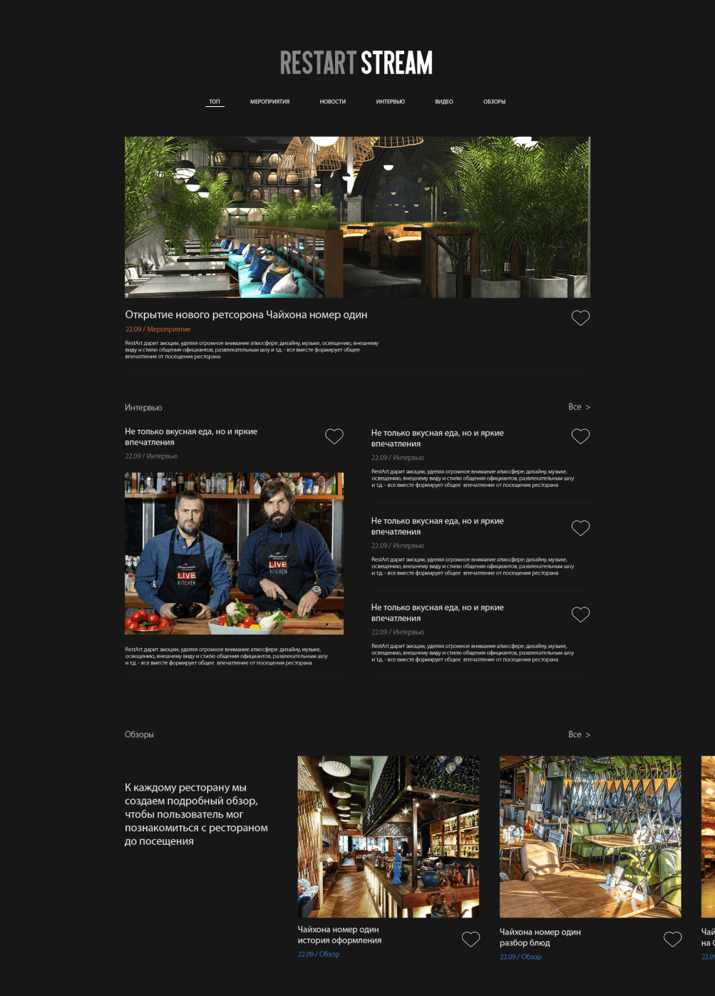 Рестораны и заведения различных сегментов и концепций